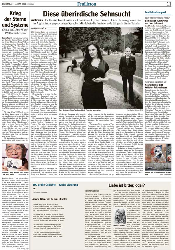 Der Pianist Tord Gustavsen kombiniert Hymnen seiner Heimat Norwegen mit einer in Afghanistan gesprochenen Sprache. Mit dabei: die faszinierende Sängerin Simin Tander […] Read More