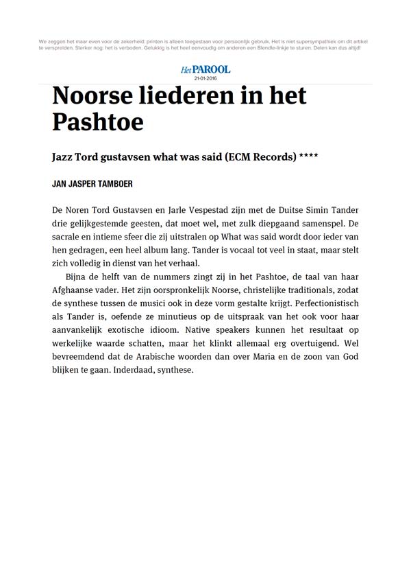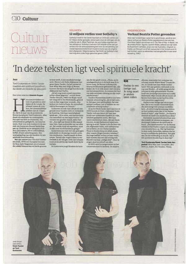 De Noren Tord Gustavsen en Jarle Vespestad zijn met de Duitse Simin Tander drie gelijkgestemde geesten, dat moet wel, met zulk diepgaand samenspel. De sacrale en intieme steer die zij […] Read More